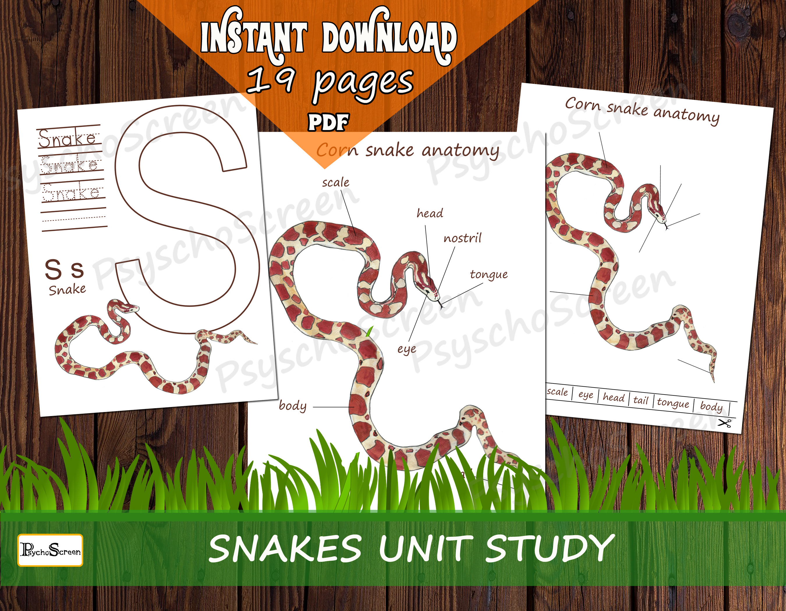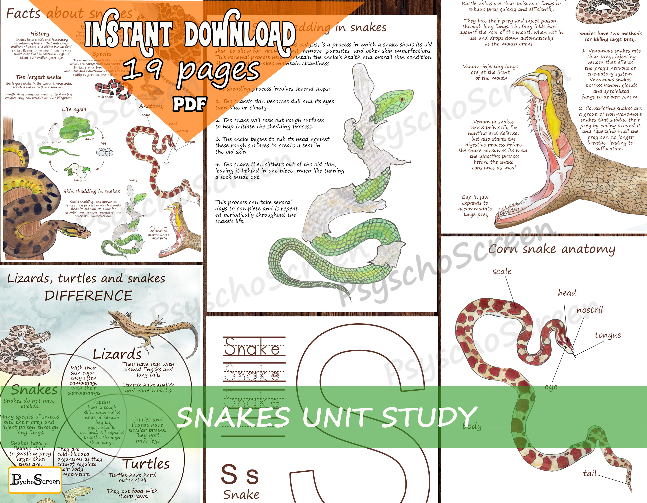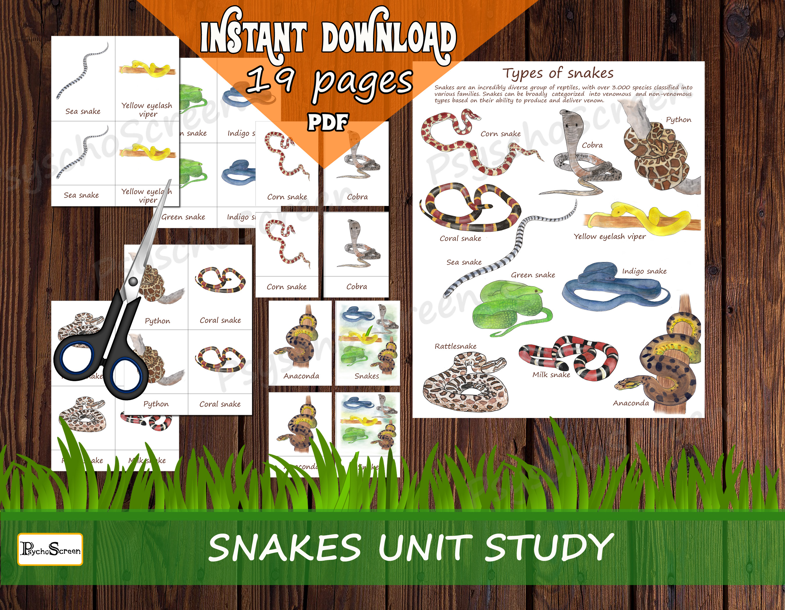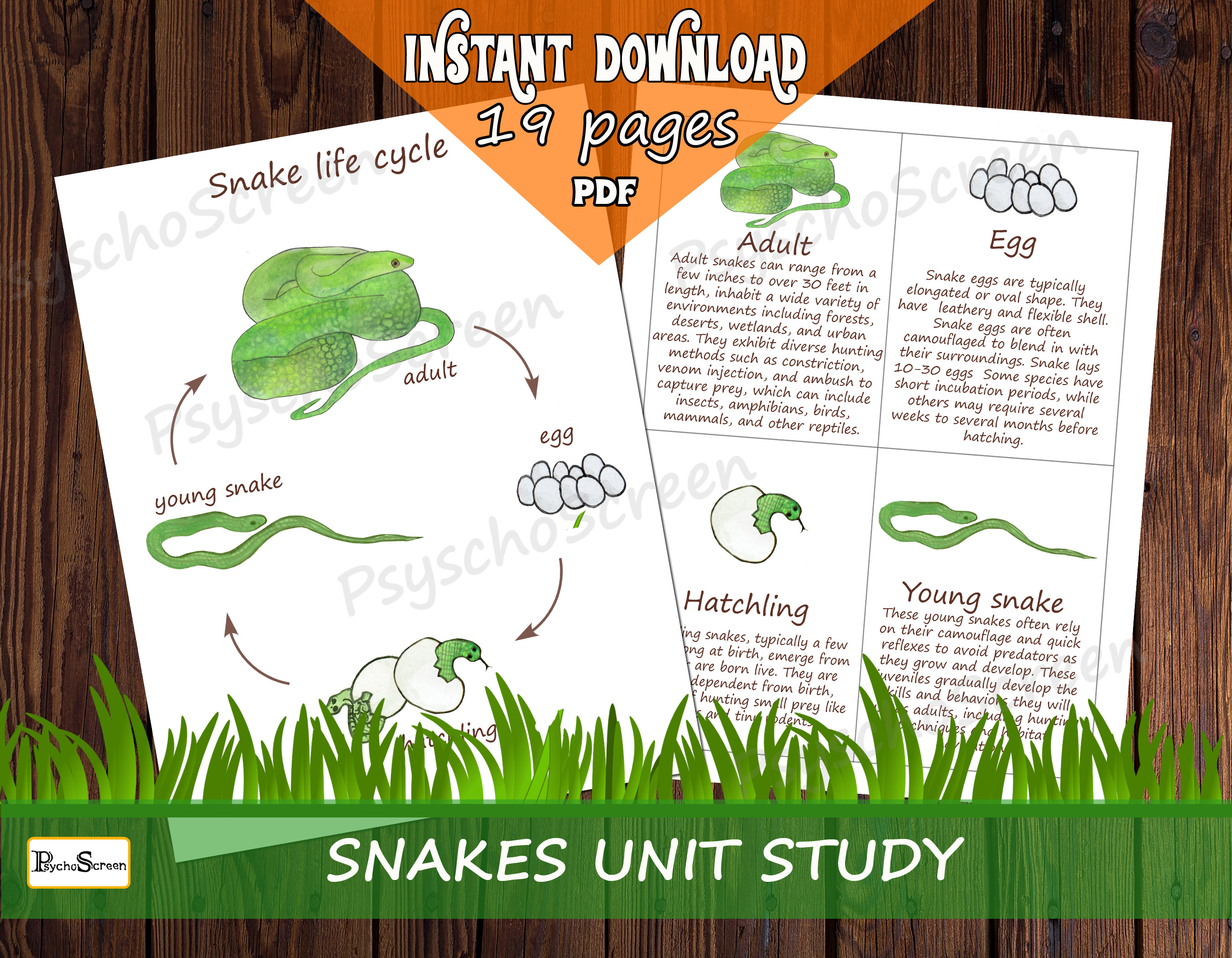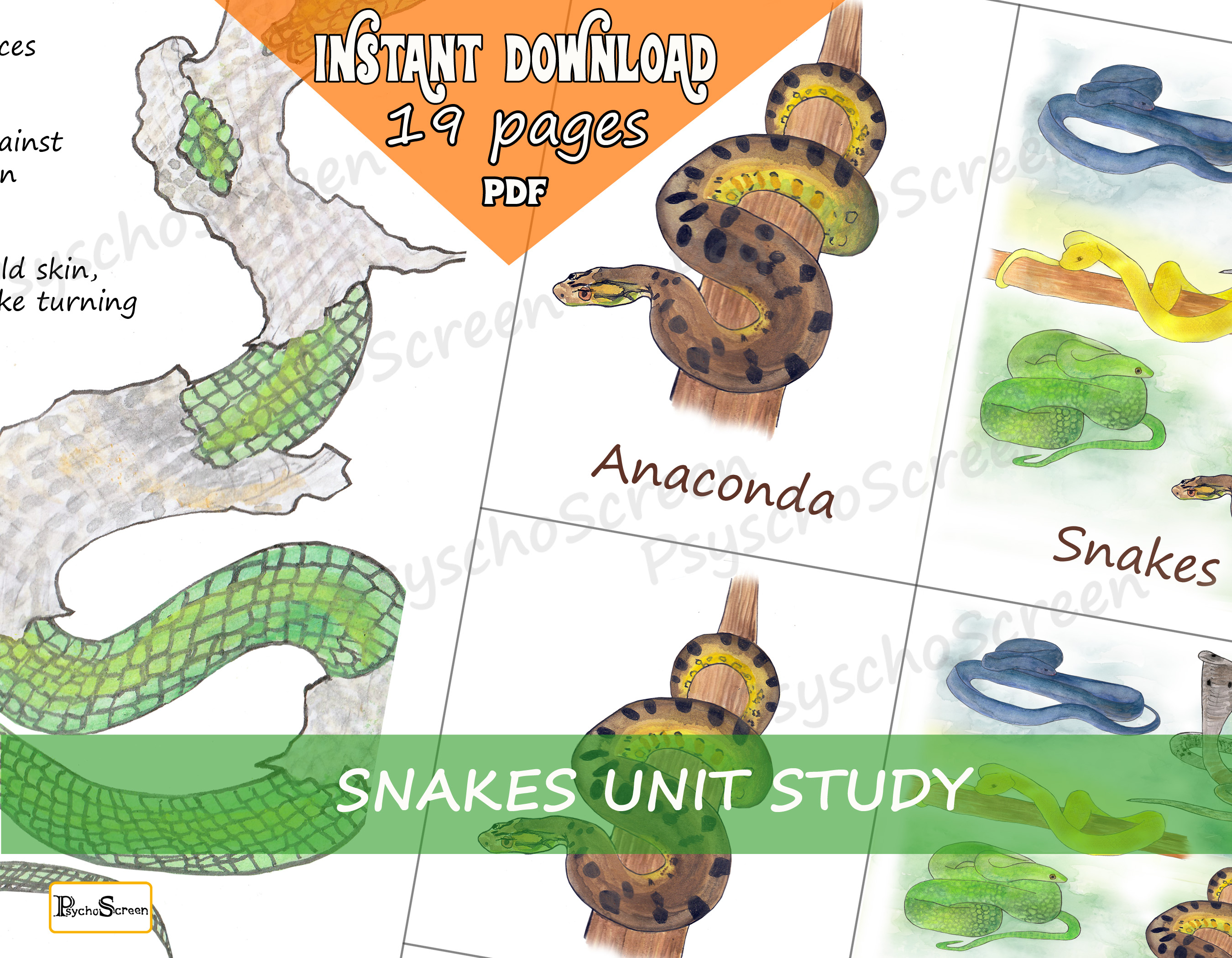 SNAKE Unit Study, Printable snakes bundle with Anatomy, Diagram, Life cycle, Flashcards